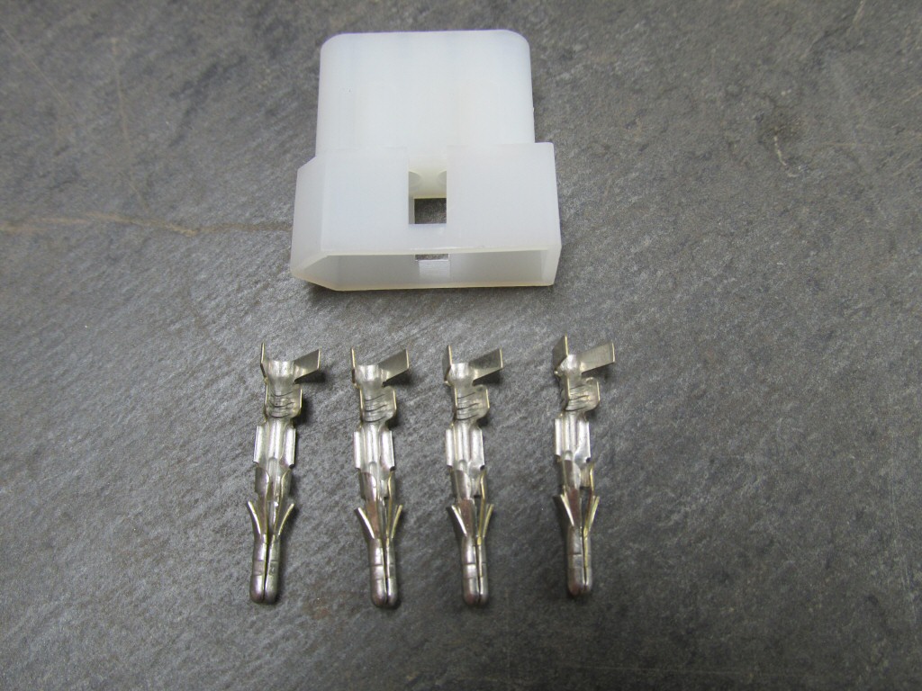 4 terminal Molex plug and 4 male terminals Useful for installing on a universal right handlebar switch. |