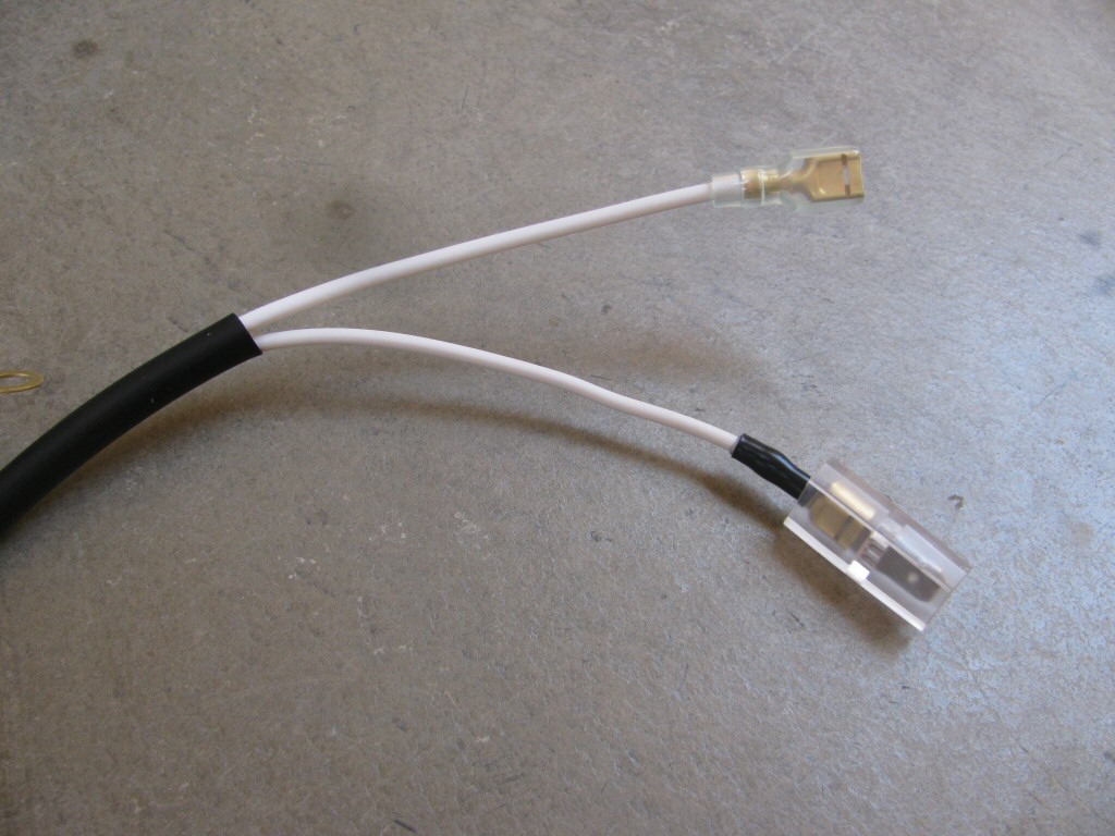 Extension cable for left front turn signal Connects the bulb holder inside the turn signal to the turn signal harness. Fits original CEV turn signals that accept a 2.62 mm wide female spade terminal. Fitment to other turn signals is unknown. |