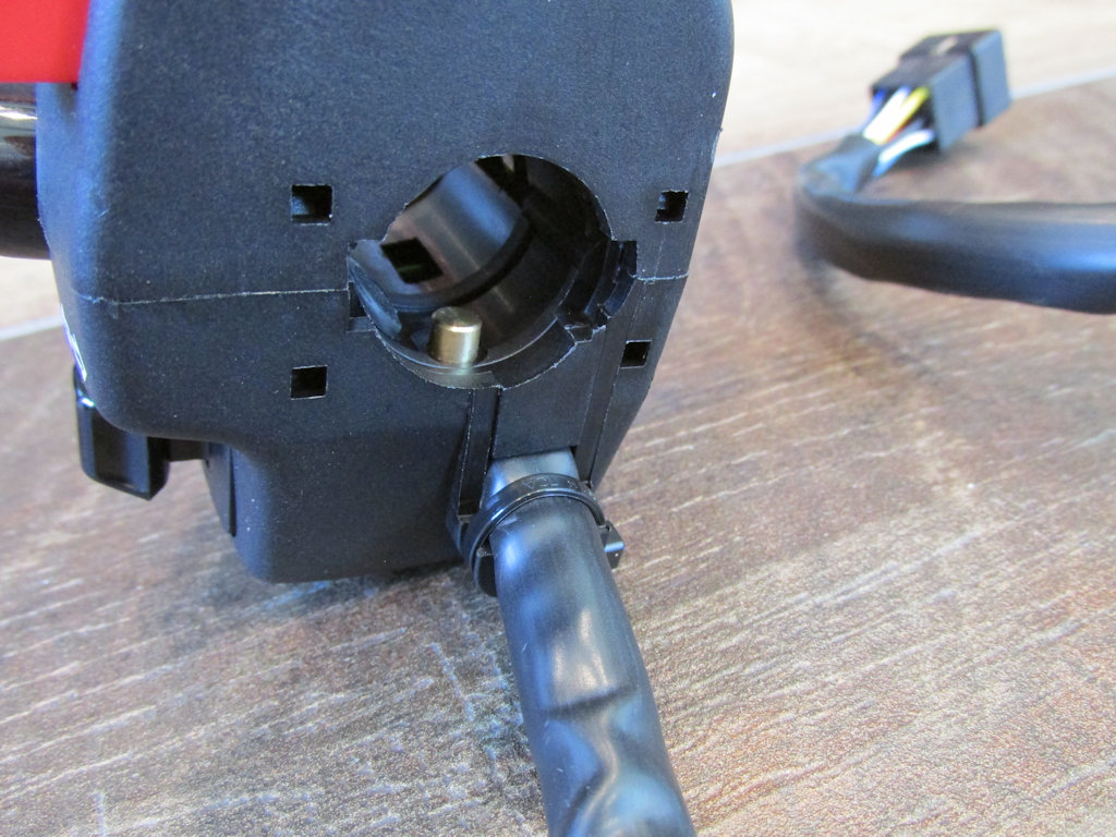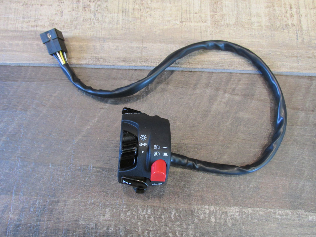 Replacement wiring for the right handlebar switch Ready for your switch (MG# 17635000 or MG# 18735040). Wires are 800 mm in length. Upon request, the wires may be left separate from the 3 terminal plug - so that the wires may be more easily routed inside to the handlebar.