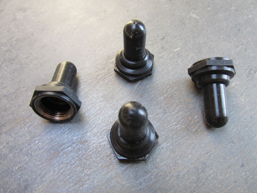 Half height toggle switch boot Half-height boot for the toggle switch. Uses standard 15⁄32-32 inch threads. Be sure to rotate the toggle with the boot when fitting the boot to the switch. Sold each. |