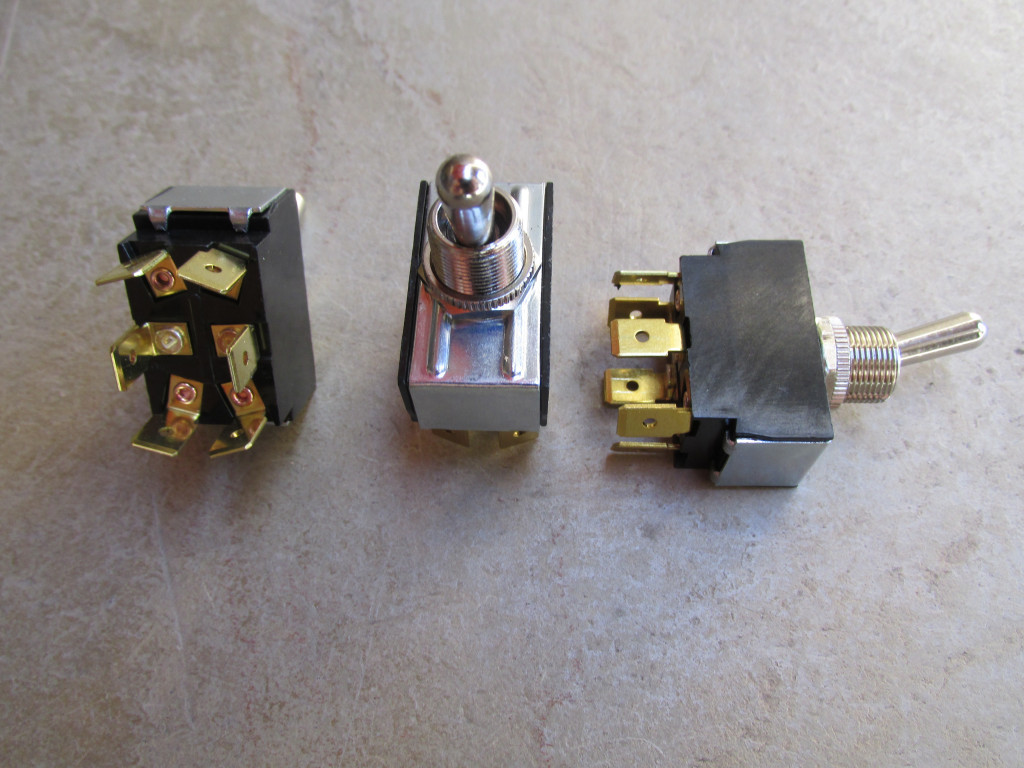 Toggle switch Excellent quality SEALED switch with six quick connect terminals (as original). 15 amp capacity, on-on double pole double throw, comes complete with mounting hardware (as shown). Sold each. |