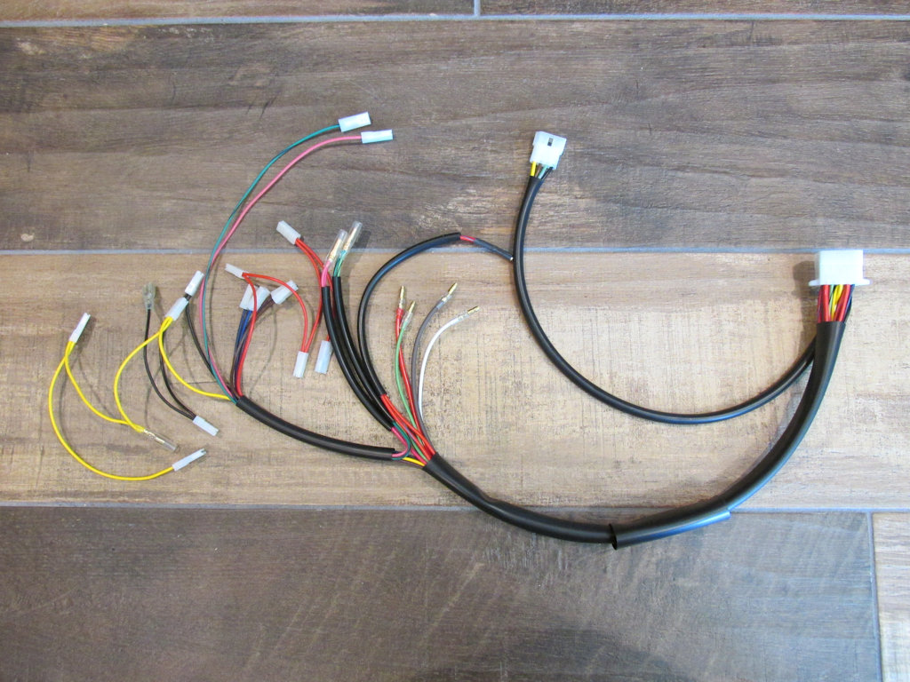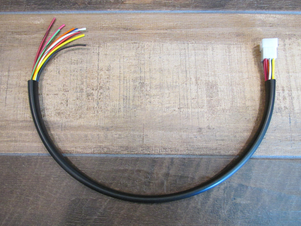 Replacement wiring for left handlebar switches Ready for your switch (MG# 17746020 and MG# 17750301 or MG# 18746040 and MG# 18750340). Wires are 800 mm in length. Upon request, the wires may be left separate from the 12 terminal plug - so that the wires may be more easily routed inside to the handlebar.