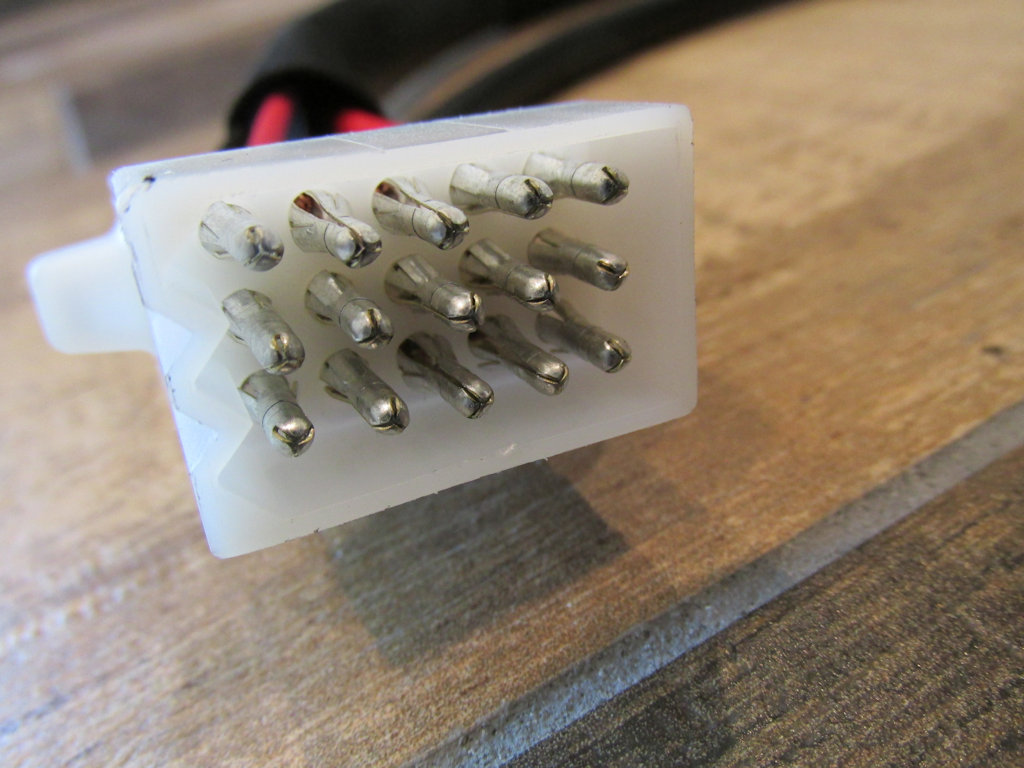 12 terminal Molex plug and 12 male terminals Useful for installing on a universal left handlebar switch. |