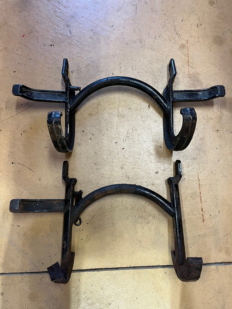 Right side, had a different bend to clear the swing arm nut ![]() Photo courtesy of Charlie Mullendore of Antietam Classic Cycle. |