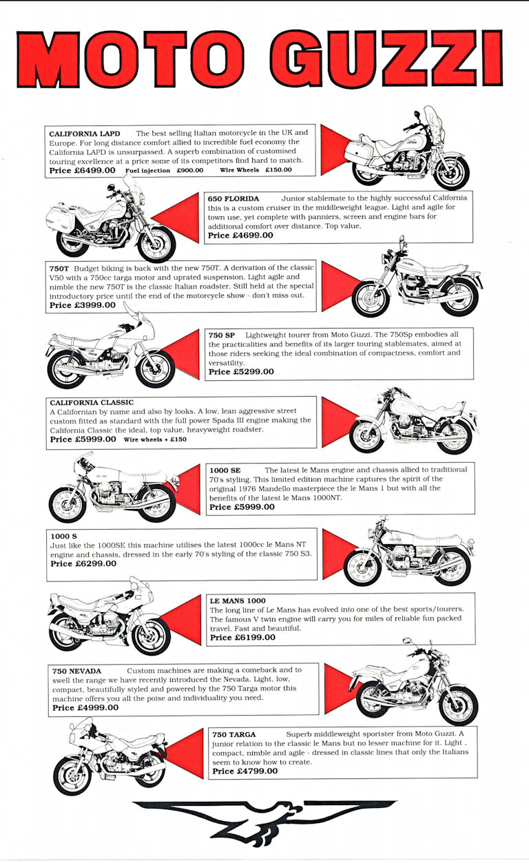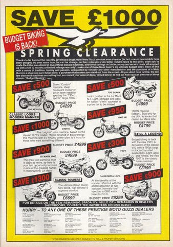 Thanks to Richard Williams for sending me these advertisements, which feature the rare, United Kingdom only, Moto Guzzi 750 T.