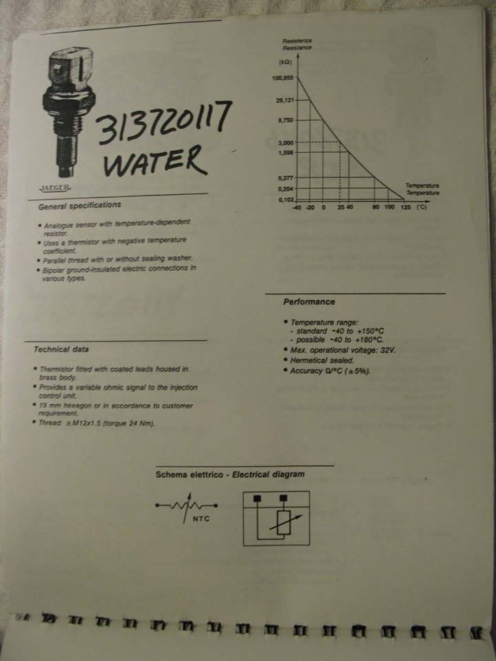 Here is the data sheet for the temperature sensor that is installed on the right cylinder head. I acquired this document from a posting by Guzzi2Go