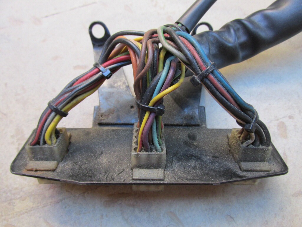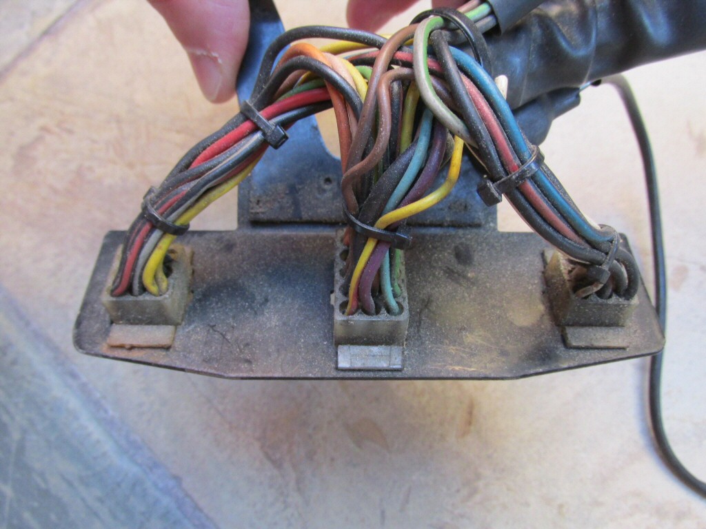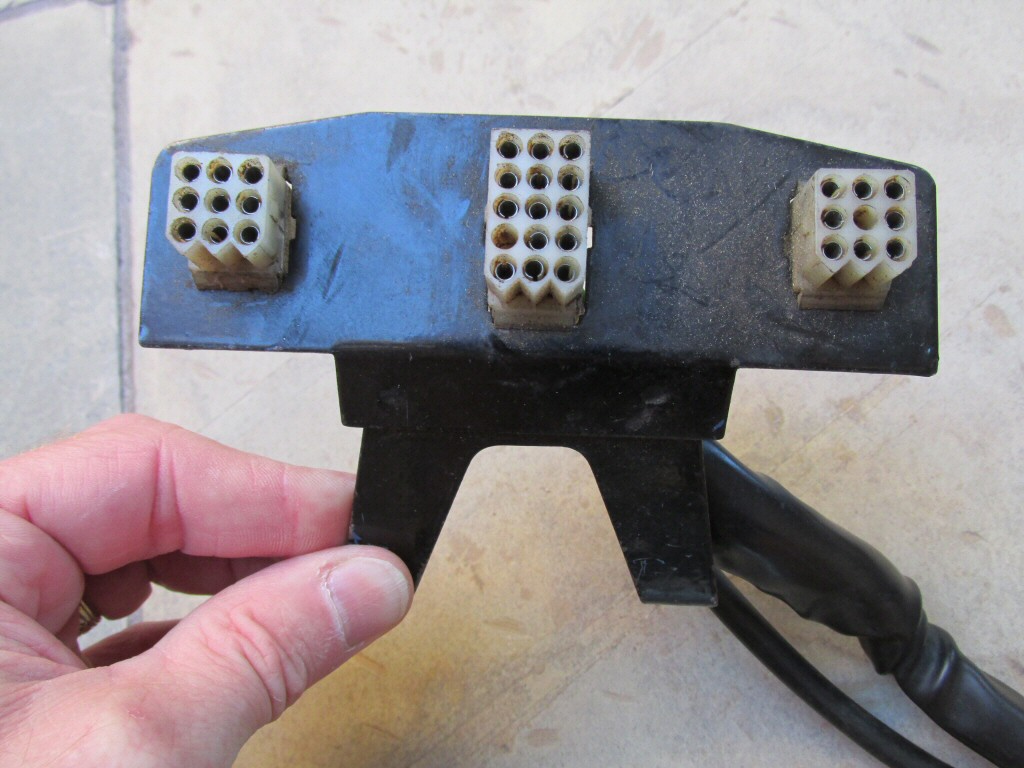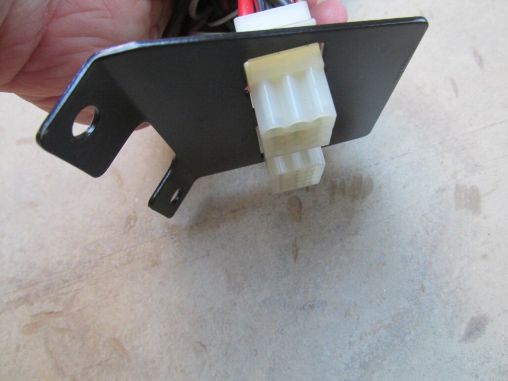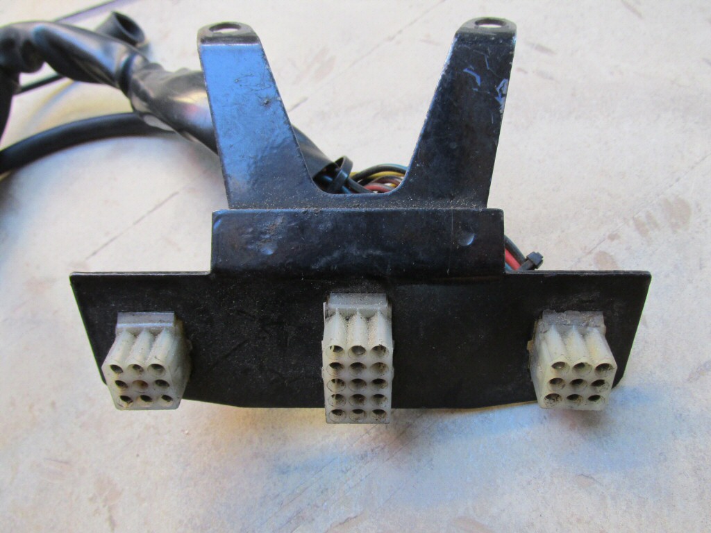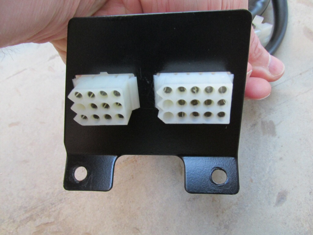 This plate holds one 15-terminal connector, one 12-terminal connector, and one 4-terminal connector. Mounts beneath dash.