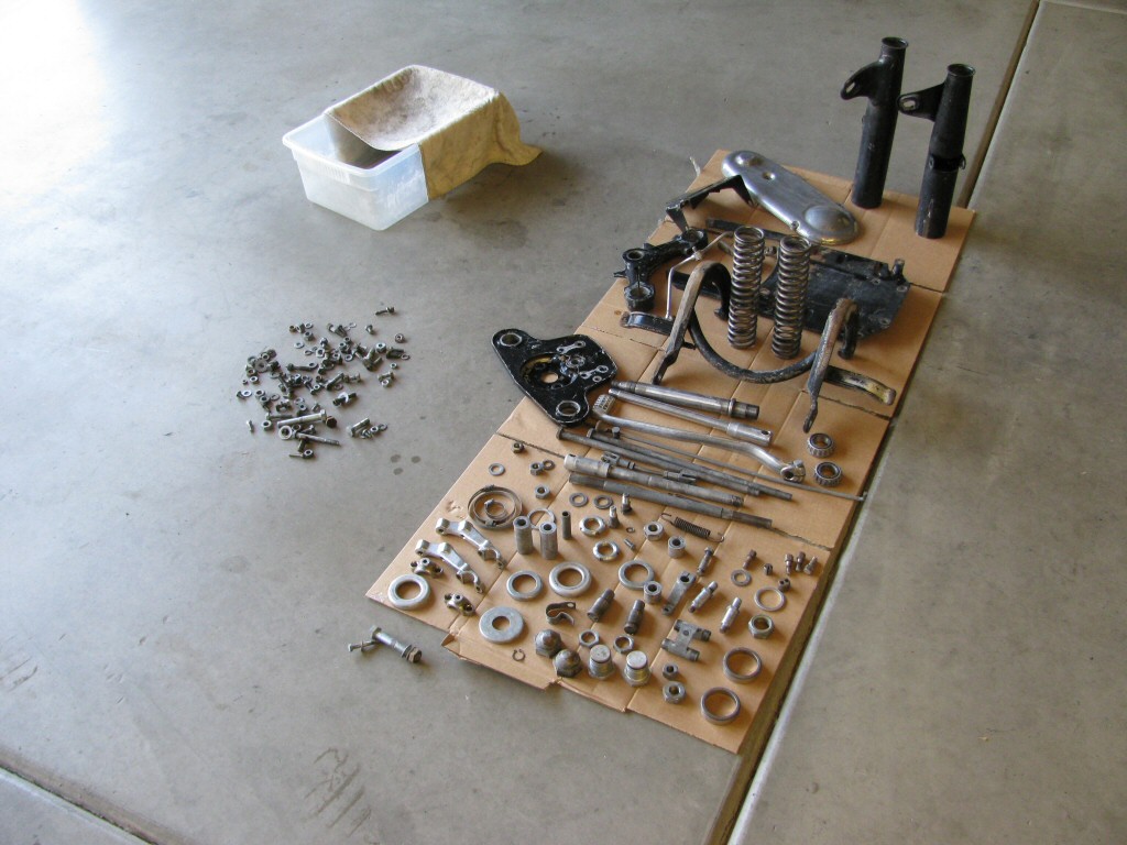 I cleaned and degreased many parts first thing in the morning before I went for a ride on my dirt bike. Later Sunday evening, I took the time to disassemble the rear drive, brake plates, and forks. I placed the steel parts in my degreaser tank for soaking. I never soak aluminum parts in degreaser for very long at all (generally no more than an hour and certainly not overnight or for days). I've found the degreaser reacts with the aluminum and creates a very ugly corrosion type chemical reaction. The degreaser can also change the color of the aluminum if soaked for too long.
