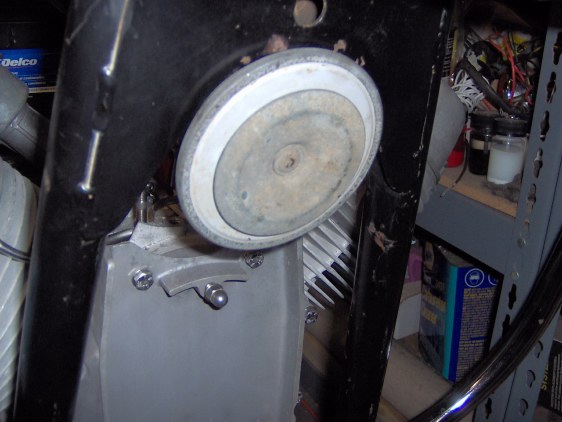 Found an old VW Bosch horn in some junk. Cleaned and mounted it. Not sure it will stay as I have a nice pair of vintage Fiamm horns with chrome domes that I might use instead. But then, they're a bit too pretty for this project...
