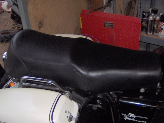 on the old Yahoo! Loopframe_Guzzi news group (which has now moved to Groups.io) recommended Pliobond brand cement and that proved to be the best I've ever used. Easy to apply, plenty of time to work with, dries quickly. The refurbished seat proved to be more comfortable on the trip down to the MD/DC MGNOC Spring Campout over the weekend and looks very nice. Success!