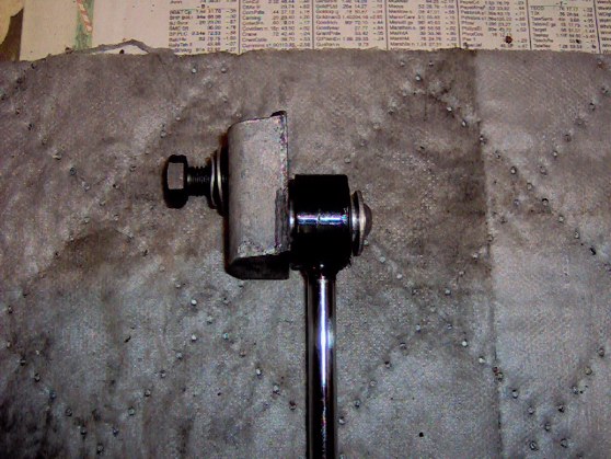 To prevent clearance issues (the fender is known to hit the forward attachment bolt under full compression) I plan to remove approx. 3 mm from the aluminum block and shorten the bushing at that end as well. Hopefully, these alterations along with a button-head cap screw will give me adequate clearance.