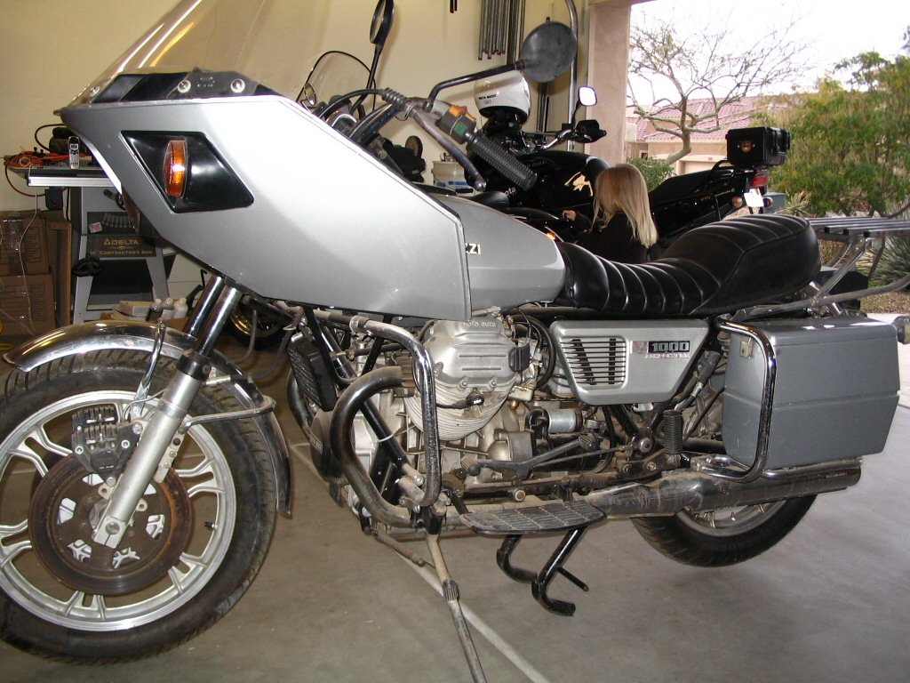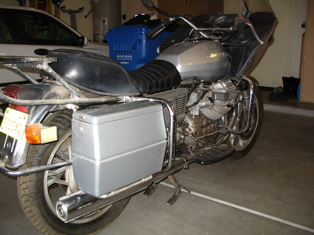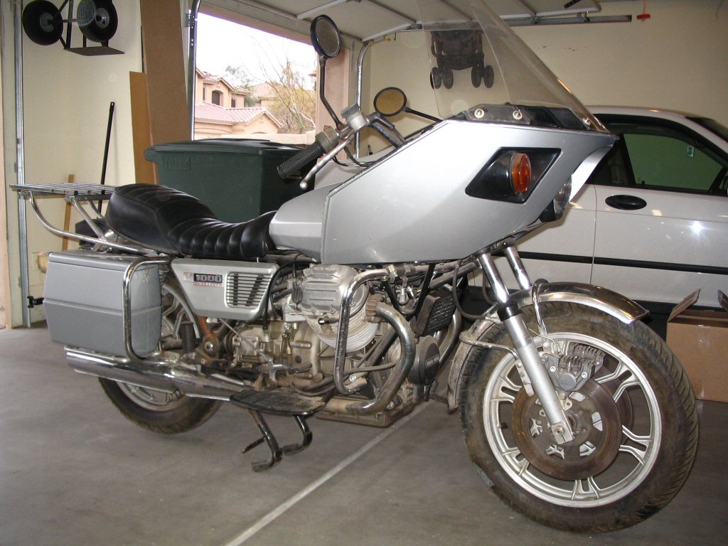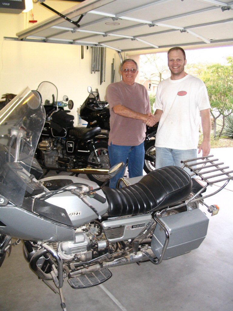 The previous owner delivered the convert to me this afternoon. We did the deal, took a couple photos, and then I proceeded to begin disassembly. Overall, I am quite pleased with how well things came apart. There were no rusty, crusty, stuck bits and even the exhaust slid apart like a dream. Good stuff. I think the bike has sat outside for the last couple months here in Phoenix. But, it most certainly did not spend the last 11 years outside. It is in too good of condition for that to have been the case.